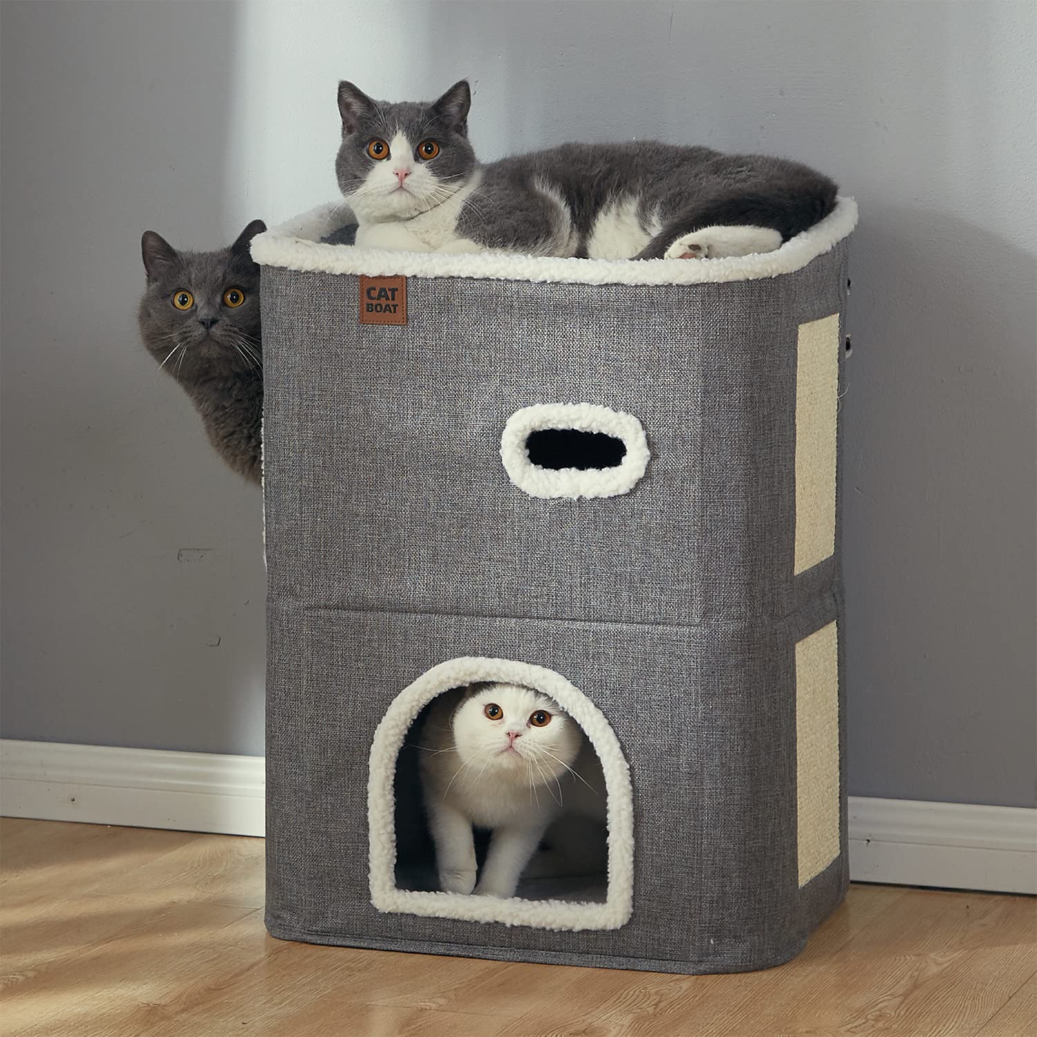 - TRI-LEVEL CAT BED - The Modern design of this Pet cat house offers 3 levels of interactive fun and the perfect place to nap or snuggle. Provide spacious cat houses for indoor cats.